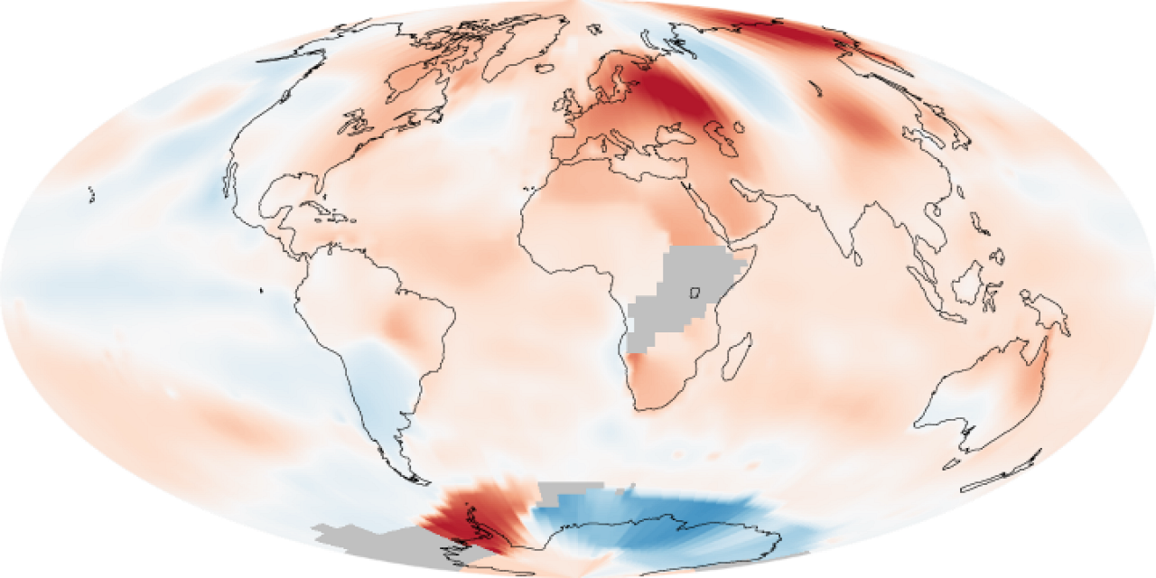 Аномалии глобальной температуры, июль 2010